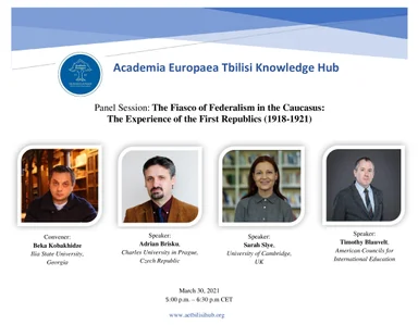 Past events 30 March 2021 Panel session: The Fiasco of Federalism in the Caucasus: The Experience of the First Republics (1918-1921) Read more